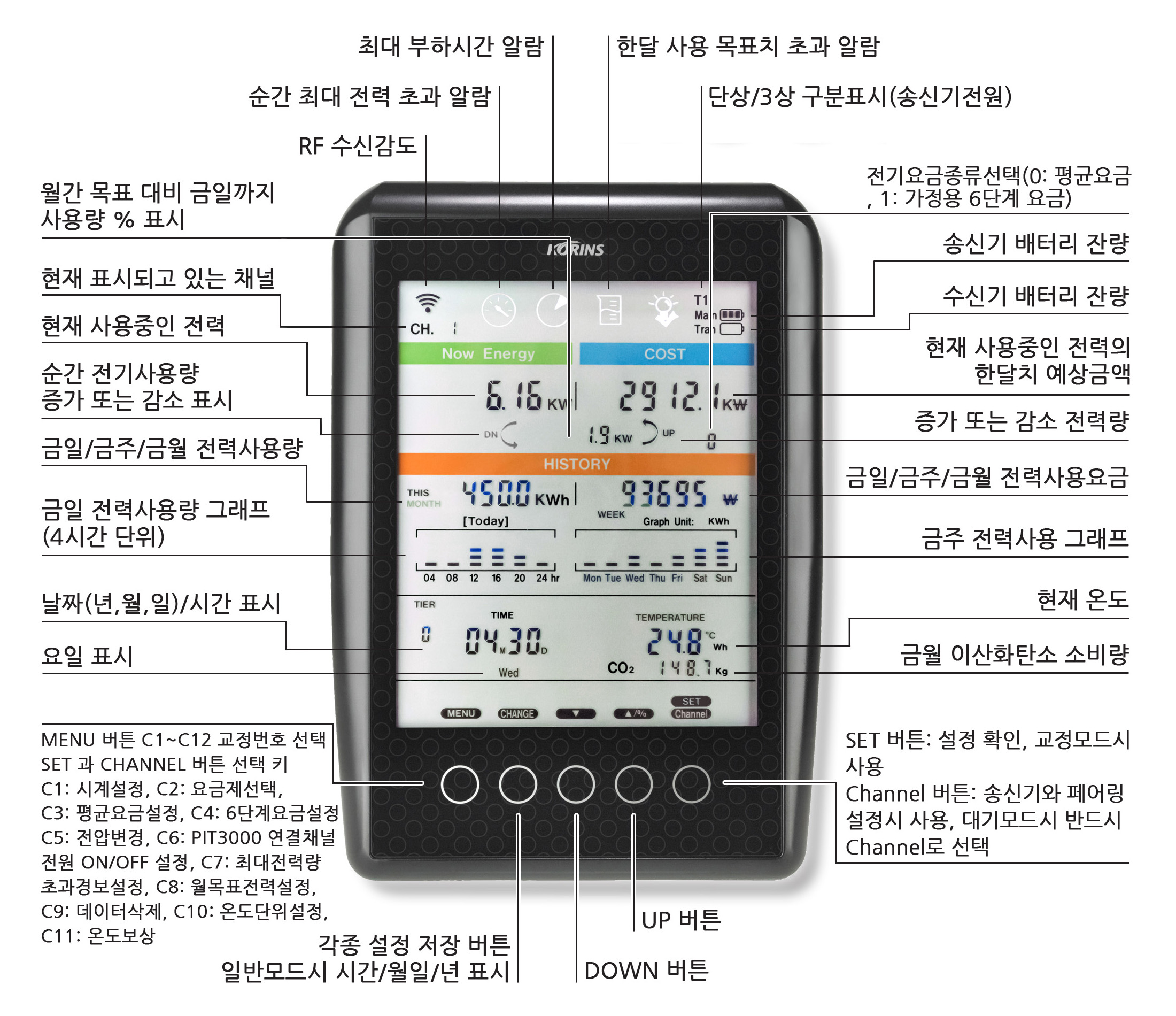 PC 소프트웨어 제공:  그래프(일간, 월간), 10찬넬 DATA
